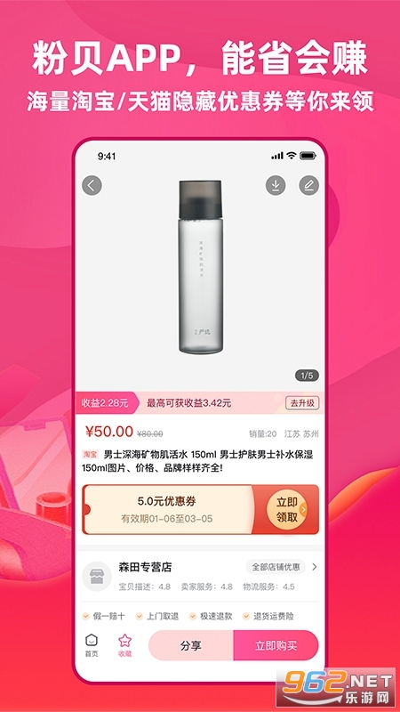 粉贝是一款导购领券返利APP,粉贝提供了天猫淘宝等大型电商平台大量隐藏优惠券。自购省钱,分享赚钱。网购先用粉贝搜优惠券再下单,每年省去几千元,分享给好友还能赚钱。粉贝APP—你的省赚助手!