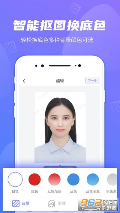 2、支持一键更换证件照底色,多种背景色可选。