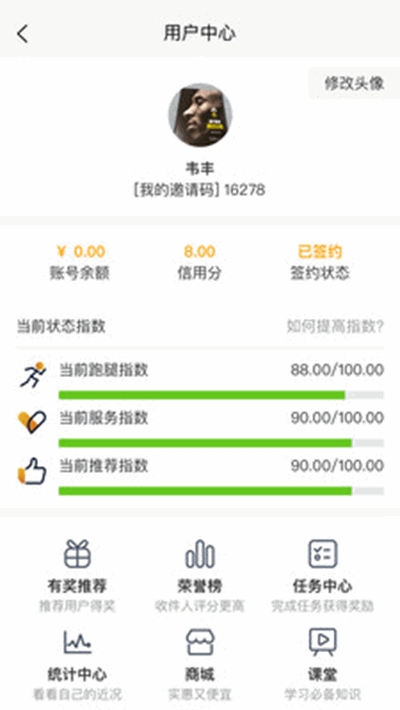 拥有个人跑腿接单数据统计,在统计中心可以查看自己近期接单赚钱情况;