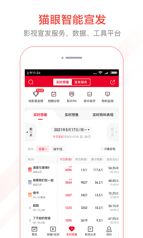 6.秒级实时票房:国内首款秒级实时票房查询工具,每分每秒掌握电影市场实时动态;