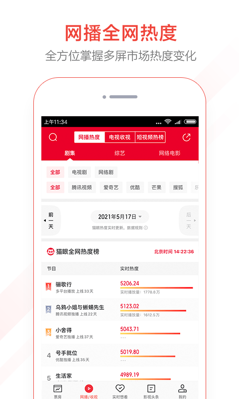 1.网络播放量:各大视频平台网播内容播放量监控;