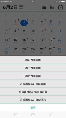 《茉莉日历》可进行动态切换当 年视图,月视图,隐藏需要忽略日历信息,动态添加事件标记(可进行自定义事件标记颜色,以及事件名称),动态切换周视图,可切换一周起始星期,为用户自行选择提供便利!