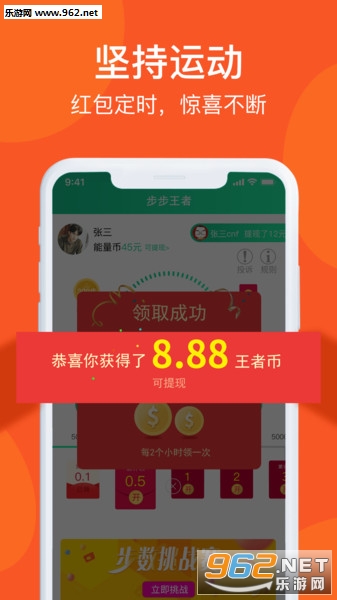 每天运动步数换现金红包,走的越多赚的越多,旨在让用户每一步都有价值,边运动边赚钱,走路即可开始计算收益,每日的步数会对应每日的收益,步数越多收益也就越多,既能锻炼身体又能赚钱。