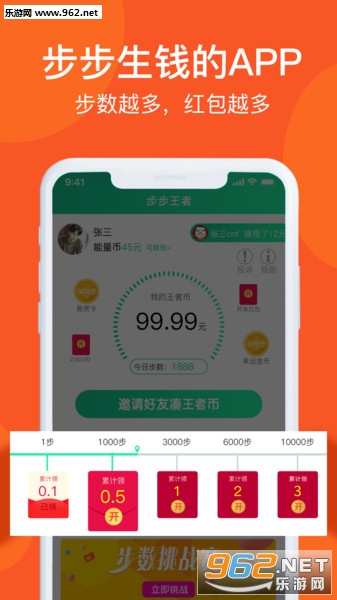 邀请好友,立得奖金,让好友加入运动赚app,一起走路