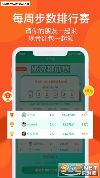 2、每天走路的步数累计起来,谁的步数更多呢,上榜可获得现金奖励哦,每周一0:00:00发放奖金至零钱;