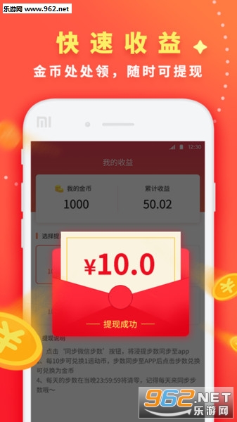 步数换金币:每日同步步数,可换取对应的金币数额,步数越多,金币越多。新用户首次绑定还将获得额外金币大礼包。