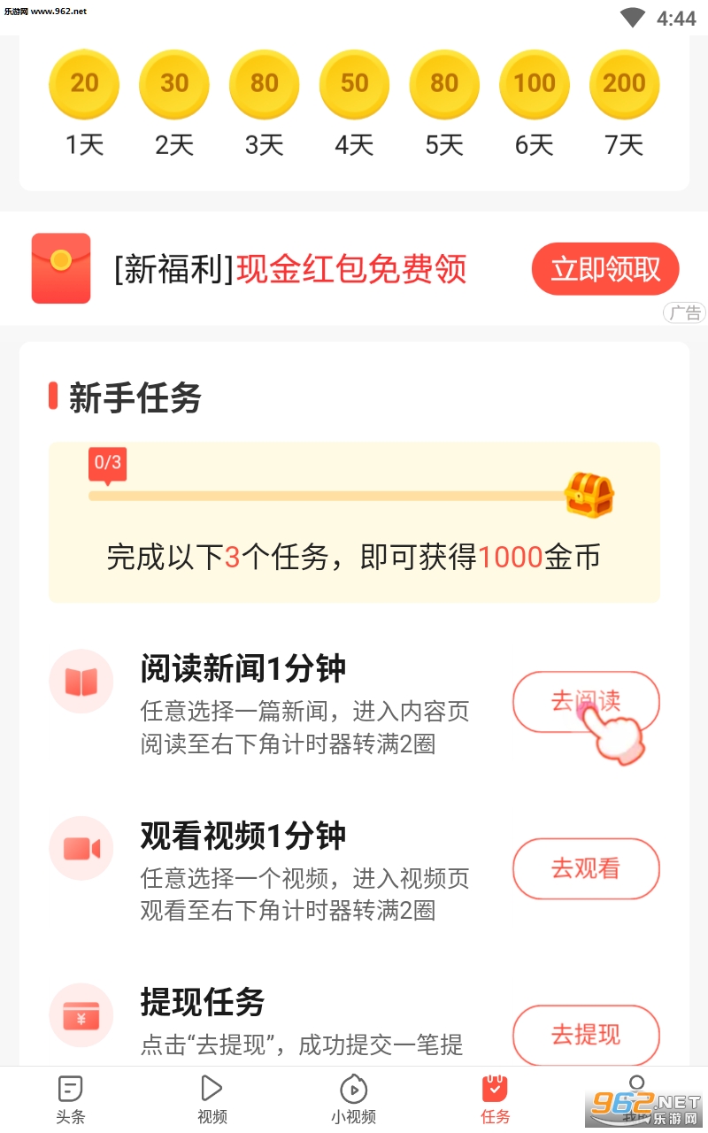 看新闻资讯视频头条拿金币,赢好礼!不定期活动,超高现金福利享不停,邀请好友红包送不停。
