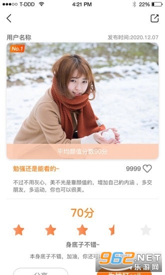 2.用户通过上传自己的美照,系统对该照片进行评分,好友之间也可以为相互打分提高颜值分数。