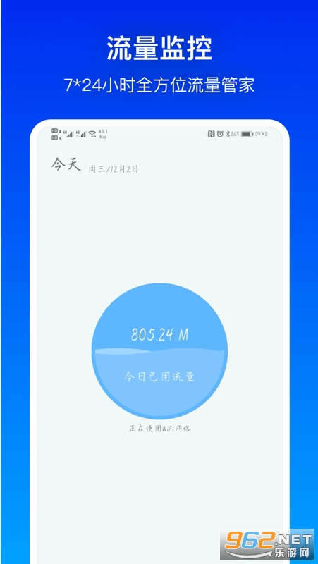 【智能流量统计】月剩余流量、今日已用流量、本月已用流量,实时监控每天流量数据;