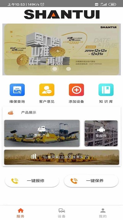 山推e路行软件是为旗下产品用户打造的手机智能设备管理app,让购买的旗下挖土机的用户可以在手机上更好的管理设备,能够查看机器的各种数据与安全,在出现问题的时候方便大家线上报修,软件还有官方商城让大家购买正品配件,各种行业信息也为大家提供。