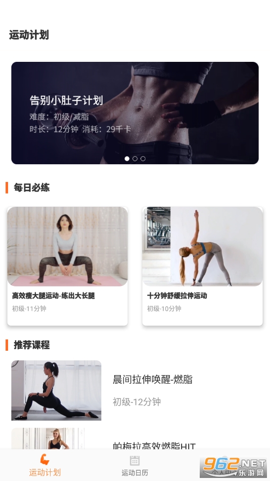 2、增肌、减脂、舞蹈、休闲类健身视频,所有课程都配有视频,标准的动作演示带你快速入门;