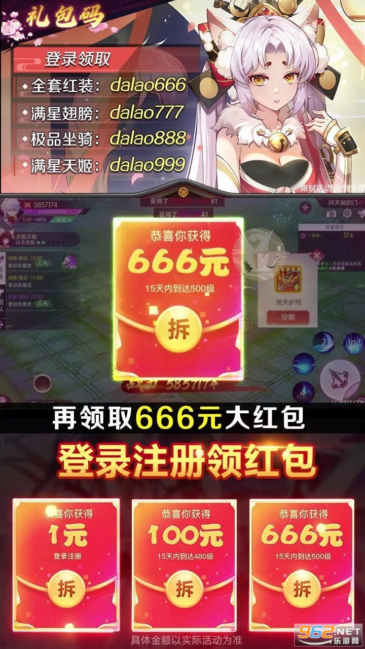 《妖月传说红包版官方版》每隔一段时间都会上线限时红包专服,注册就可以领取红包奖励,另外还有专属的礼包兑换码可以使用,登录还可以领取极品红装、满星翅膀和绝版称号及满配角色,除了可以感受到不一样的仙侠剧情以外,还可以获得高额红包福利,感兴趣的玩家赶紧下载试试吧!