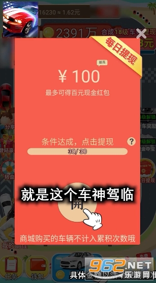 1.每合成升级赛车3级都能领一个现金红包,完成每日任务、收集电池也能领红包;