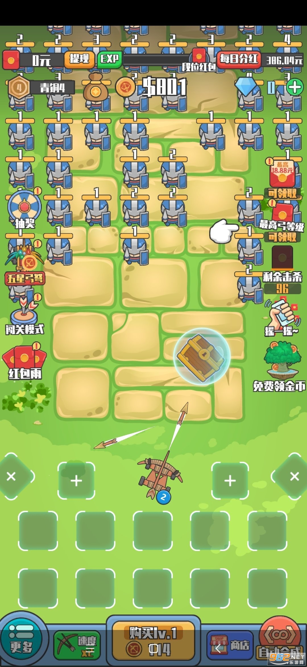 《我不是弓箭手领红包》是一款策略射箭闯关红包游戏,游戏中玩家的小勇士要向前进攻,但是前方的敌人会向你放箭,你要用盾牌抵挡这些攻击,靠近敌人,然后挥剑击杀敌人,每次闯关成功都能获得红包奖励,坚持的时间越长,得到的红包就越多。
