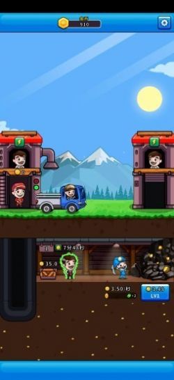 3、游戏主要采取横屏玩法,你可以安排工人也可以自己进入矿洞开采,将采集来的矿石卖掉升级采矿机,能大大提高你的采矿效率。