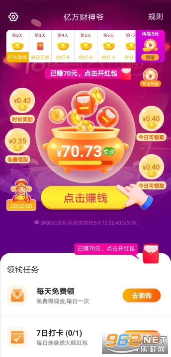 亿万财神爷红包版是一款可以帮助玩家们获得红包奖励的福利手游哦,在亿万财神爷红包版游戏之中有很多的小游戏,比如成语答题和猜谜游戏等等,每次闯关成功以后都可以获得相对应的红包奖励