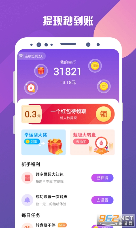 2、登录后会有一些红包弹出来,领取后即可去提现。以后每天可试玩一下『刮大奖』、『大转盘』这些也可以再继续提现。