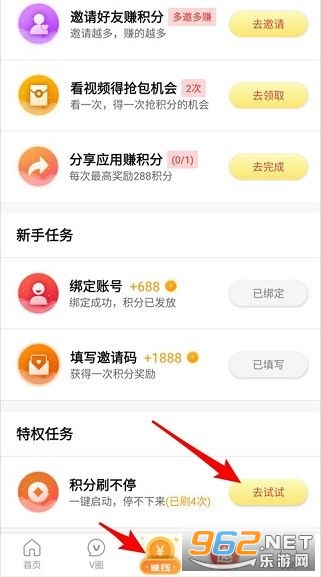 5、每10000积分可兑换1元,赚够3000积分就到个人中心兑换并提出!
