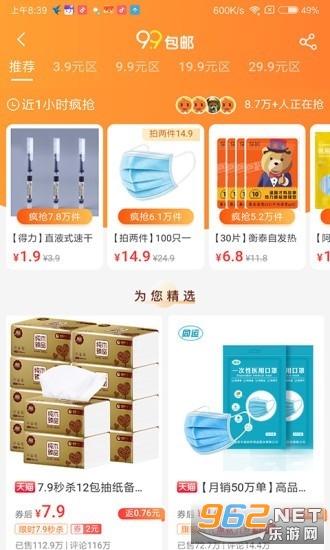 2.品牌优选、热销排行榜、每日好货、今日上新、九块九包邮应有尽有;