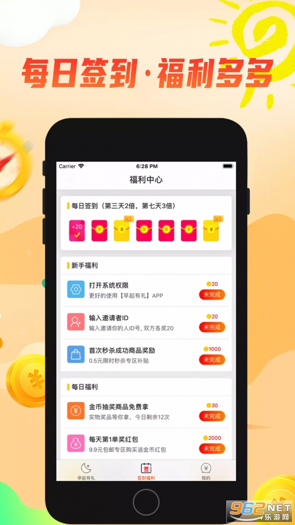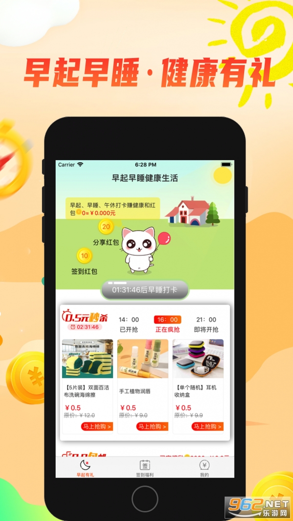 1、每天早起打卡领红包,做任务,拿福利,更多网购优惠尽在其中,让用户低价购买心仪商品。