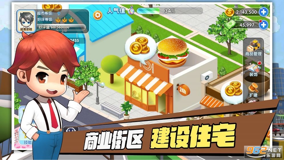 开心超市红包版是一款趣味模拟经营类游戏,经营一家自己的超市,上架各种类型的商品来满足顾客的日常生活需求,同时不断的扩张经营的规模来容纳更多顾客的消费,赚钱更多金币来兑换红包大奖。