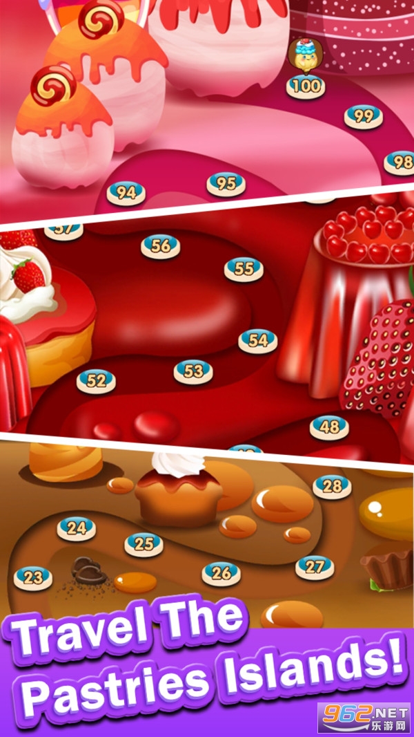 一款美食甜点题材的休闲益智小游戏,游戏非常适合打发无聊的时间,玩法和经典的三消一样,通过交换使三个以上同色糖果相连进行消除,本作在画面和操作上更胜一筹,而且更有彩虹,炸弹等特殊道具等你体验哦。