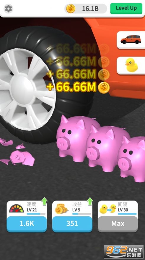《粉碎我最强赚钱游戏》是一款画风精美休闲发泄游戏,简单的玩法操作,让你控制轮胎移动在游戏中粉碎钻石,小黄鸭,尖叫鸡,小猪等物品,完成关卡的任务和挑战,不断地升级获得更强的战斗力,迎接更难的挑战,还能领红包赚福利哦!
