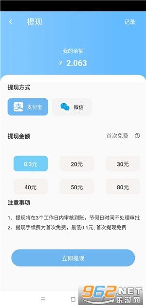 5、理想列车首次满0.3元即可提现到/支付宝,之后满20元起提现