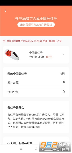 2、分红号每天均分理想列车游戏赚钱平台20%的广告收入,限量10万位,先到先得。分红号可由两位37级动车概率合成,也可通过五位特殊动车合成获得,还可以通过个人努力,持续玩游戏获得
