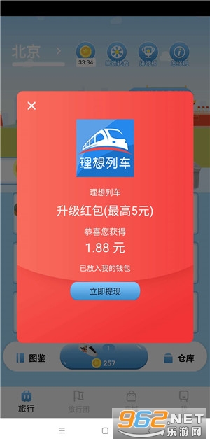 1、理想列车每天都有超多的福利可以获得,海量的红包拿到你手软哦,只要解锁车厢都能获得大红包