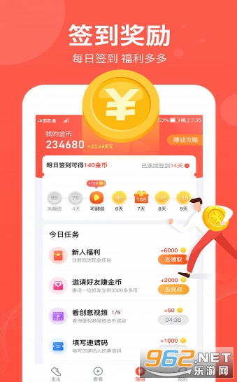 4、只要是使用后台签到打卡就能轻松的获得积分,还有幸运大抽奖天天分钱瓜分百万金币享不停。