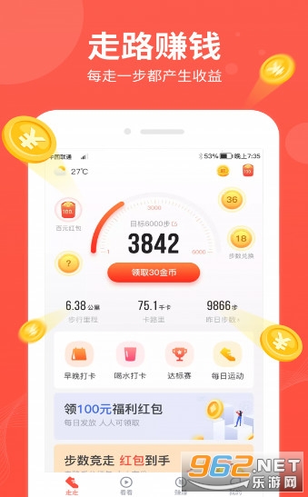 《快乐走app赚钱》是一款走路赚钱软件,每天只要走走路就可以轻松赚到红包奖励哦,每天走一走不仅锻炼身体还能得到红包,一举两得,坚持每天打卡签到也能得到红包奖励,快来试试吧。