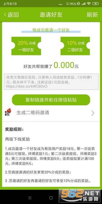 邀请好友的话,目前呢是有16元的奖励,同时的话两级的提成一共是有50%,多多邀请好友的话,他这奖励的话算也是更加多的,这都是没有什么疑问,你们感兴趣的内容的话都是可以转发出去的