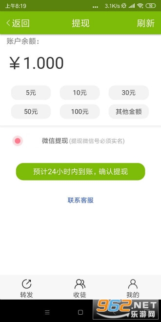 杨桃转app 这个也是一个转发类型的,因为它上面收集了很多海量的热点资讯啊,然后你们都是可以转发的,目前的转发文章单价是5毛,非常轻松哦。所以说你们感兴趣我还是可以去操作一下,然后对老用户的话,应该也算是比较好的。