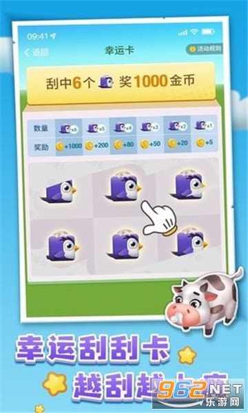 3、两颗同等级的蔬菜可以合成为高一级的蔬菜。还有签到、抽奖、红包雨、刮福卡等多种趣味版块。