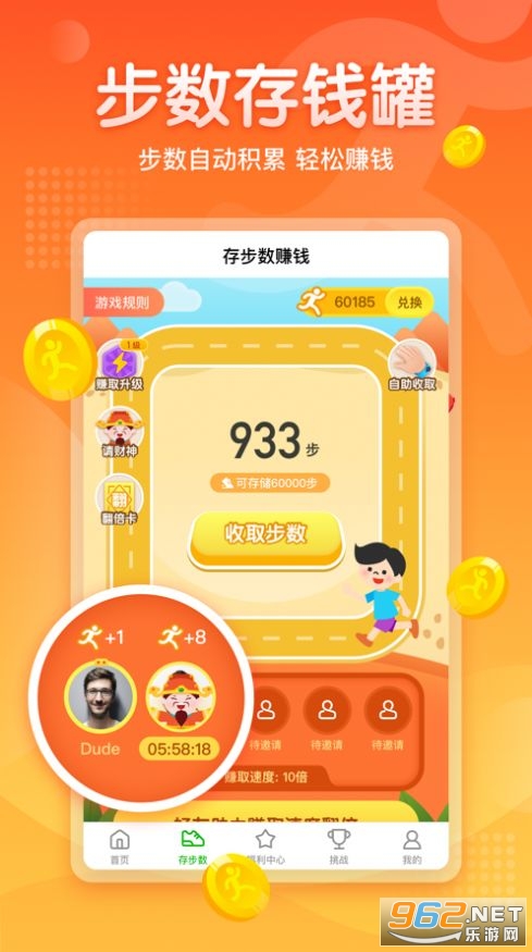 3.邀请朋友们惊喜,5元红包+大份,用钱变软手,步行运动,健康生活,简单界面和简单操作的完美结合,为用户带来良好的用户体验;
