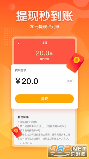 2、走路就能赚钱,极速提现,分秒到账