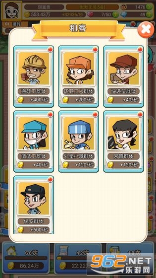 1、玩家在游戏中只需要不断收租即可,游戏玩法很轻松,过程也很简单。