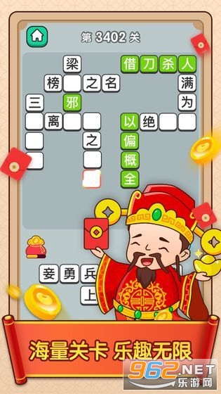 《成语大将军》是一款非常给力的成语答题赚钱平台,简单的赚钱方式方法,不但可以打发无聊的时间,还能通过成语答题的游戏方式来赚红包,门槛低,操作简单,赚钱容易,感兴趣的朋友欢迎来962下载吧!