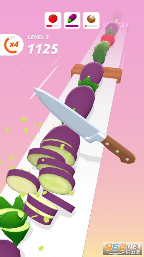 现在你要进入到厨房里去完成切菜的工作,这里有各种各样的蔬菜瓜果,动一动手指就能开始了;在长长的传送带上会有食物不停的送到你的面前,在它滑走之前务务必要切碎,时间是有限的只有达到了当前的目标才能获得加时的机会,看你一次性能得多少分。