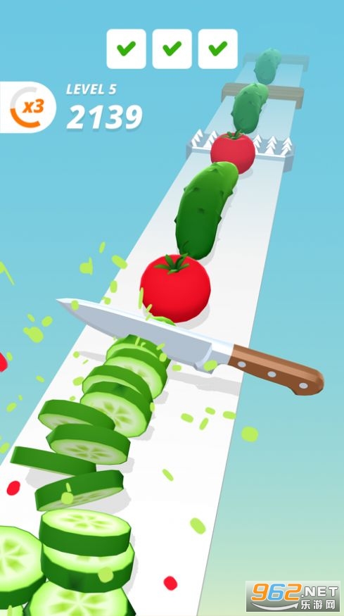1、爽快的休闲切割玩法,将所有的水果全部切片,果汁四溅看着十分眼馋;