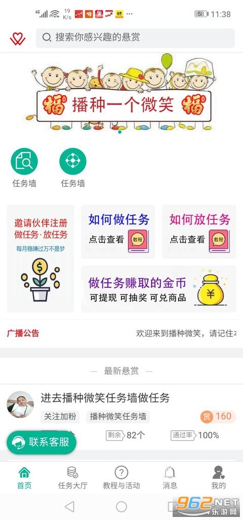 播种微笑任务赚米平台全新上线了,1000笑脸等于一元,里面的钱超级好赚,现在任务墙里面有十几万个任务,很多高价任务。