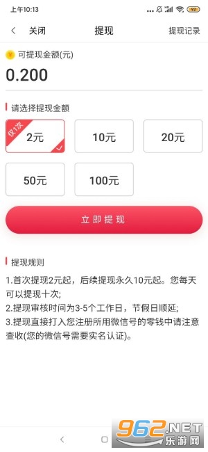 1首次提现2元起,后续提现永久10元,您每天可以提现10次