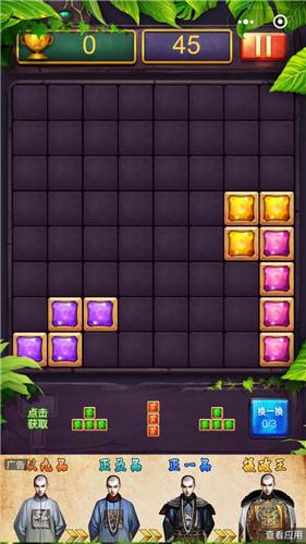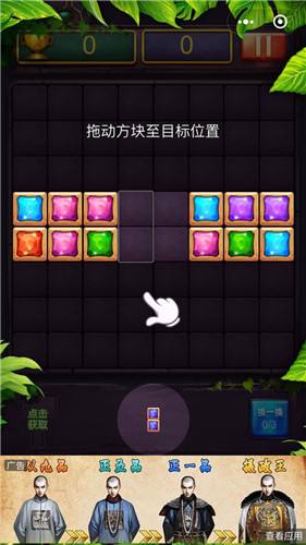 2、手动拖动底部的方块组合到棋盘格空位放置。