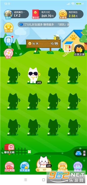 4、疯狂合猫猫每日任务、幸运大转盘不仅能获得大量猫币奖励,还有机会获得现金奖励