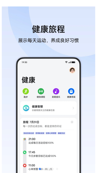【健康旅程】以时间顺序展示你当天最重要的运动、健康事件,助你回顾全天健康行为旅行,更好地养成健康生活习惯。