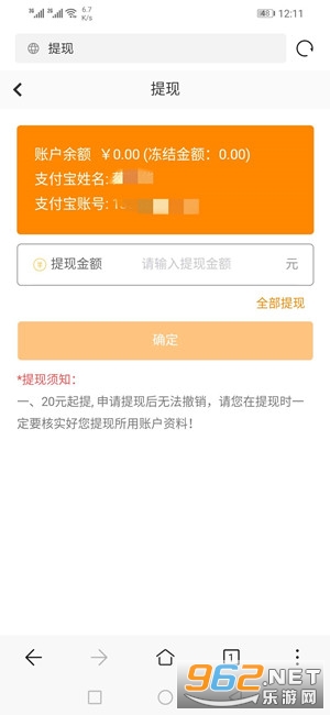 3、最后TT任务平台满20元起提现到支付宝,申请提现后无法撤销,请您在提现时一定要核实好您提现所用账户资料