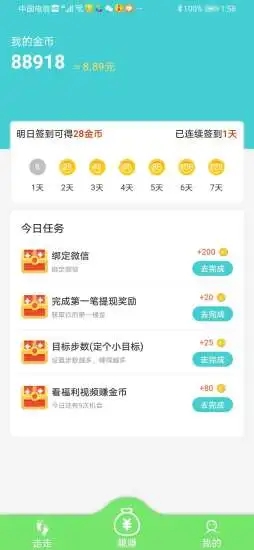 用户在每天的运动过程中,被APP记录下来的步数都可以用来兑换金币并且提现。
