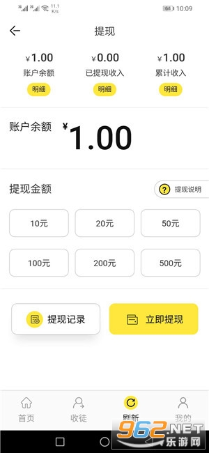 5、梅花网首次满10元提现秒到账,之后永久满10元提现到,24小时内到账