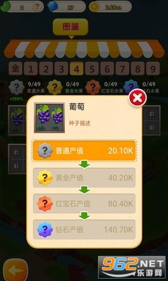 1、玩家的等级越高可以解锁的水果越多,提升等级还可以解锁更多的土地用来种植。